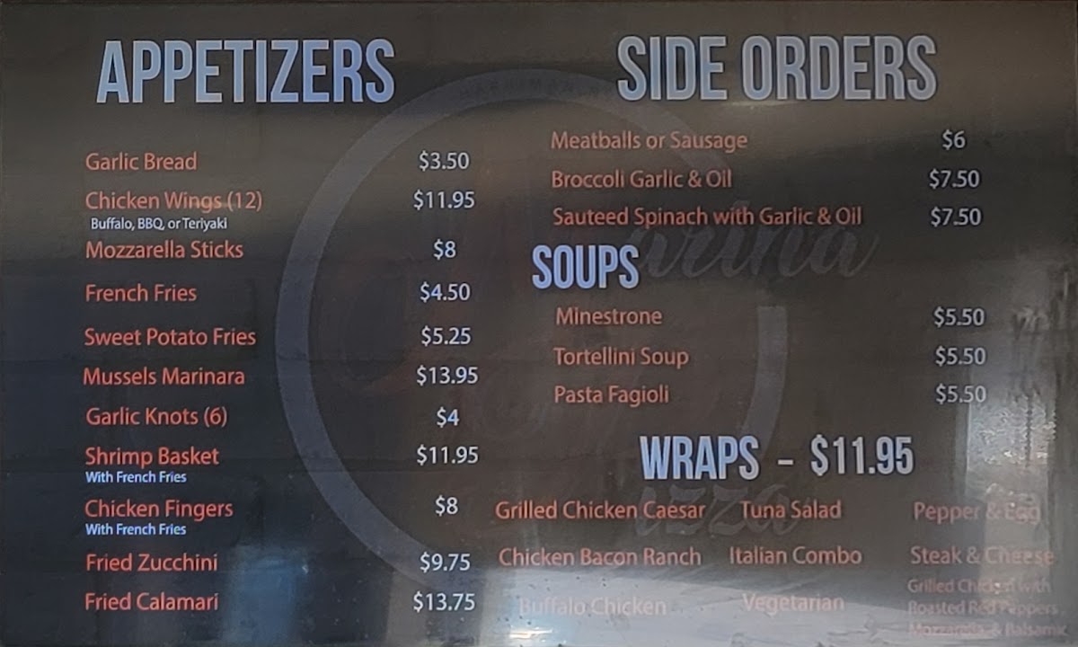 Welcome to Marina, located at 76 NY-17M, Harriman, NY. This charming establishment has quickly become a beloved spot for those craving classic NYC-style pizza. They boast an impressive menu featuring cheese pizza, Sicilian cheese pizza, and an array of delicious soups like minestrone and tortellini.
